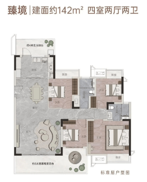 首推户型面积为131-142平方米的奢装四房,所有户型均采用南北对流设计,标准层高达到了3.15米(首层层高3.3米),并且每个单元都配备了双阳台,保证了室内的采光和通风效果。