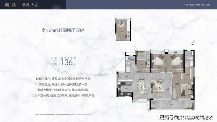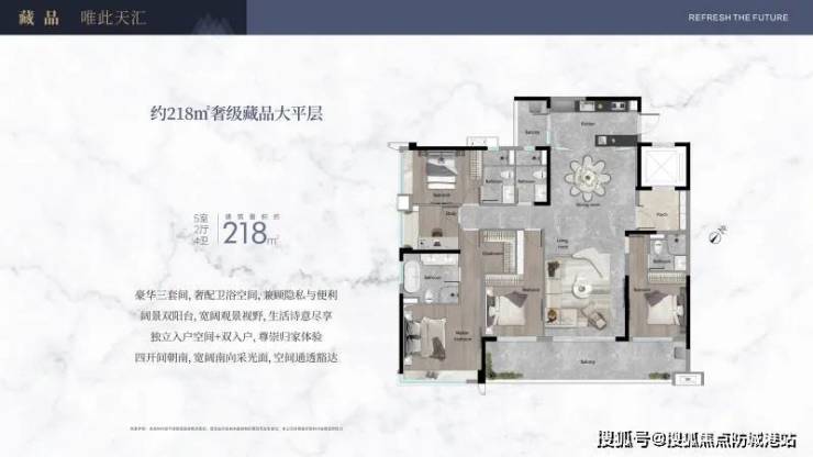 户型设计:得房率约82%,采用现代建筑立面与智能化社区管理,满足高端改善需求;