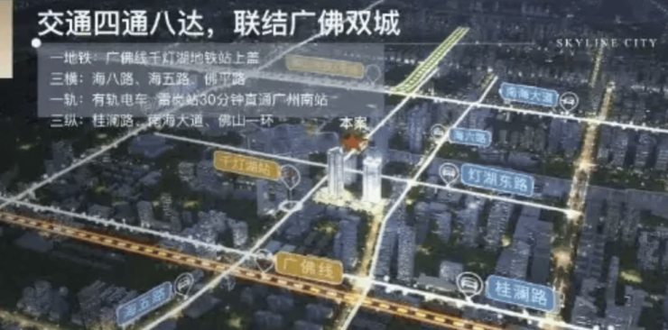 项目坐拥“十轨交汇”立体交通网络,实现大湾区1小时生活圈无缝覆盖。地铁方面,广深高铁、广汕高铁、穗莞深城轨、新白广城轨及4条地铁线路在此交汇,其中广佛线千灯湖站(距项目500米)与佛山3号线千灯湖站(距项目600米)双地铁环绕,1站直达广州荔湾、天河,30分钟通达珠江新城。自驾出行方面,项目5分钟接入佛山一环、广佛江珠高速,15分钟抵达佛山西站,25分钟直达广州南站,形成“空铁陆轨”四位一体通勤体系。此外,项目周边覆盖172路、205路、G3路等12条公交线路,主干道海五路、灯湖西路贯穿全城,构建起高效、便捷的出行生态