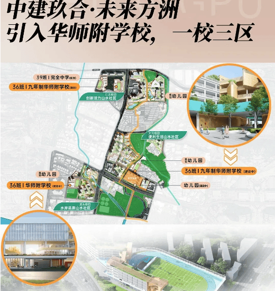在配套设施方面,中建未来方洲可谓 “应有尽有”,能为居民打造一站式生活圈。教育配套上,整个旧改项目三个组团规划了 4 所幼儿园、1 所小学、2 所九年制学校以及 1 所完全中学(初中 + 高中)。其中首开的文元组团楼下就有 1 所 12 班幼儿园和 1 所 36 班九年一贯制学校,家长可实现 “目送式” 接送,且这所九年一贯制学校将引入老黄埔首个 9 年制 “华师附” 教育体系。华师附作为华南师范大学附属学校,有着双一流、首批国家 211 工程大学的强大教育背景,华师附小升学率 100%,重点中学录取率超 70%,华师附中更有 “神学院” 之称,优质的教育资源为孩子成长保驾护航。