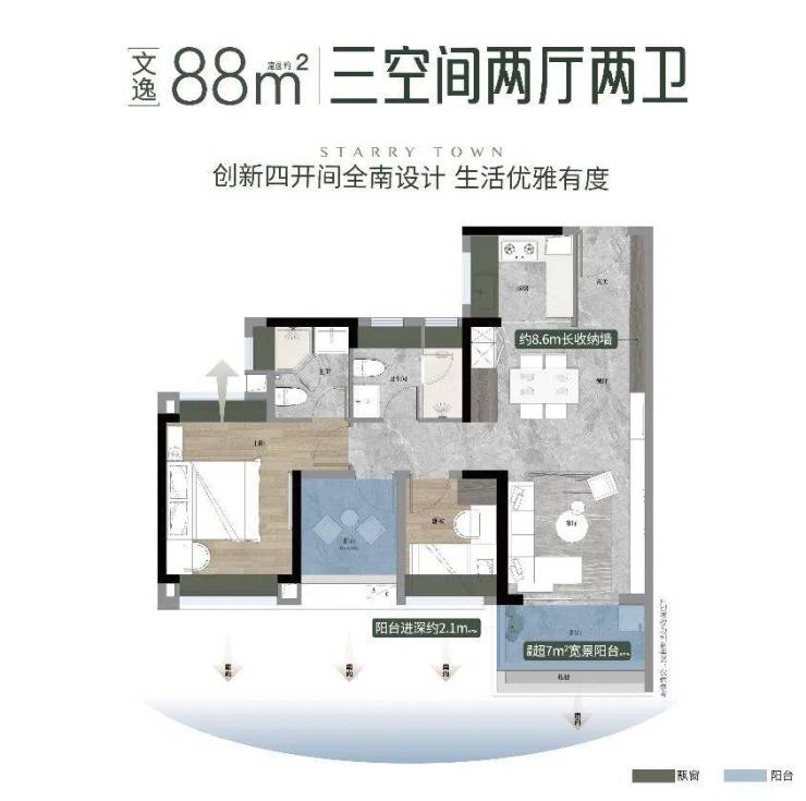 项目主打88㎡至125㎡的多种户型选择,满足不同家庭的需求。例如,88㎡的三居室拥有四开间朝南设计,提供了超过11米的景观视野,而125㎡的四房则采用了南北通透的设计,实现了客餐厅与主卧的空气对流,极大地提高了居住舒适度。每个户型都注重实用性与美观性的结合,力求给业主带来最佳的生活体验。