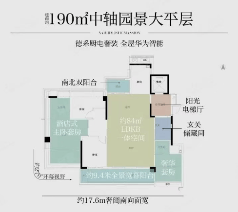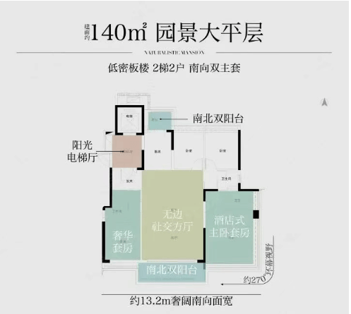 板楼设计与景观优势:板楼设计,2 梯 2 户,电梯位于核心筒中间,业主互不干扰,相当于 1 梯 1 户。部分楼栋位于社区中轴,楼间距宽,三面被园景包围,景观好。