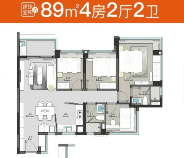 项目目前推出的户型主要集中在二期,包括78平方米、82平方米、89平方米的小三房至四房户型,设计合理,空间利用率高。尤其是89平方米的四房两卫户型,使用率超过105%,非常适合家庭居住需求。