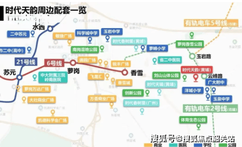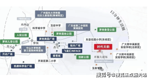 【时代天韵】地处黄埔科学城核心,位于广州东进战略重要区域,科学城作为第三中轴桥头堡与新黄金三角东支点,GDP、税收总额等指标居全国经开区之首,聚集超 190 家世界 500 强企业(约占全市 67%),产业与人才吸引力强劲。交通出行便捷度逐步提升:轨道交通方面,小区门口即黄埔有轨电车 2 号线开源大道东站,5 站直达香雪站接驳 6 号线,可直达天河、海珠、越秀;规划中的 6 号线东延段与 23 号线将在植树公园站交汇,未来地铁覆盖将进一步完善;目前距离地铁 6 号线香雪站约 3.8 公里,需有轨电车或小电驴接驳。道路交通方面,周边有开源大道、广汕公路等主干道,自驾经广园快速、华南快速等,可快速通达天河核心区,满足日常跨区通勤需求,尤其适合依赖公共交通与自驾结合的刚需人群。