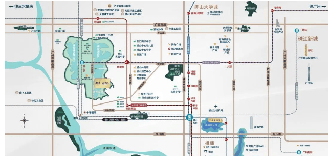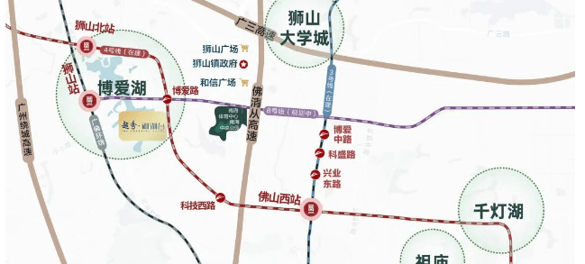 越秀·御湖台地理位置优越,交通网络四通八达。项目周边拥有“四横四纵三轨合一”的交通体系,包括广三高速、广云路、博爱路、桂丹路等主要道路,以及正在建设中的佛山地铁3号线、4号线及规划中的8号线。此外,距离佛山西站约6公里,高铁到广州南站仅需约20分钟,轻松融入大湾区1小时生活圈。便捷的交通不仅方便居民出行,也为狮山镇的发展提供了强大动力。