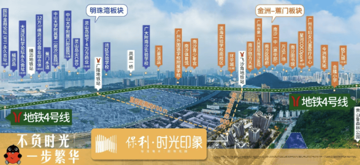 在充满机遇与变量的新区投资,区域的“确定性”与“成熟度”是抵御风险、保障生活品质的基石。保利时光印象的价值,首先根植于其无可替代的占位——南沙发展最成熟、配套最集中的金洲-蕉门城区。这里汇聚了南沙超80% 的成熟城市配套,是南沙当前无可争议的行政、商业、文化与居住中心。同时,项目与规划能级最高、旨在打造“南沙珠江新城”的明珠湾起步区(国际金融岛) 仅一江之隔,可同步享受两大核心板块的发展红利。这种“左手成熟城区,右手未来CBD”的双重占位,意味着您的家庭不仅能即刻享有全维度的成熟便利,更能无缝对接南沙未来最高能级的金融与产业发展,实现“当下即繁华,未来更可期”的价值闭环,是为“进可享未来,退可守当下”的黄金选择。