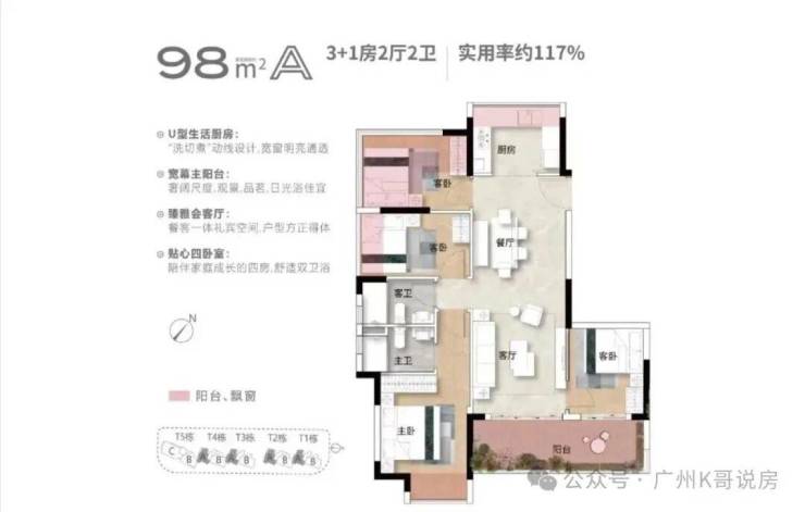 (一)建面约 98㎡ 3+1 房 2 厅 2 卫 —— 刚需改善首选・小面积大享受