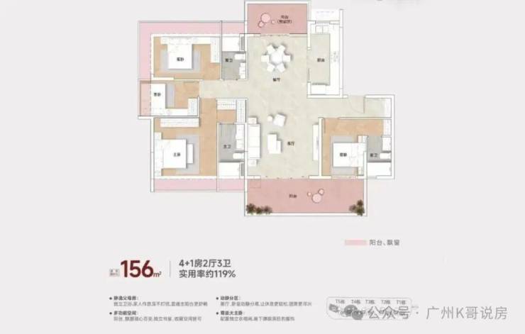 看遍广州主城,要么是珠江新城超高层豪宅,密度大、无烟火气;要么是郊区别墅,通勤不便、配套不全;要么是老城大户型,高容积率、户型差、得房率低。直到看到力迅樾公馆 156㎡楼王户型,仅 9 套,使用率 118%,实际使用面积超 184㎡,4+1 房双套间、南北双阳台、三卫设计,完美匹配终极改善需求。