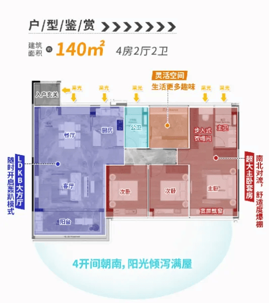140㎡改善热门款:得房率89%的品质之选