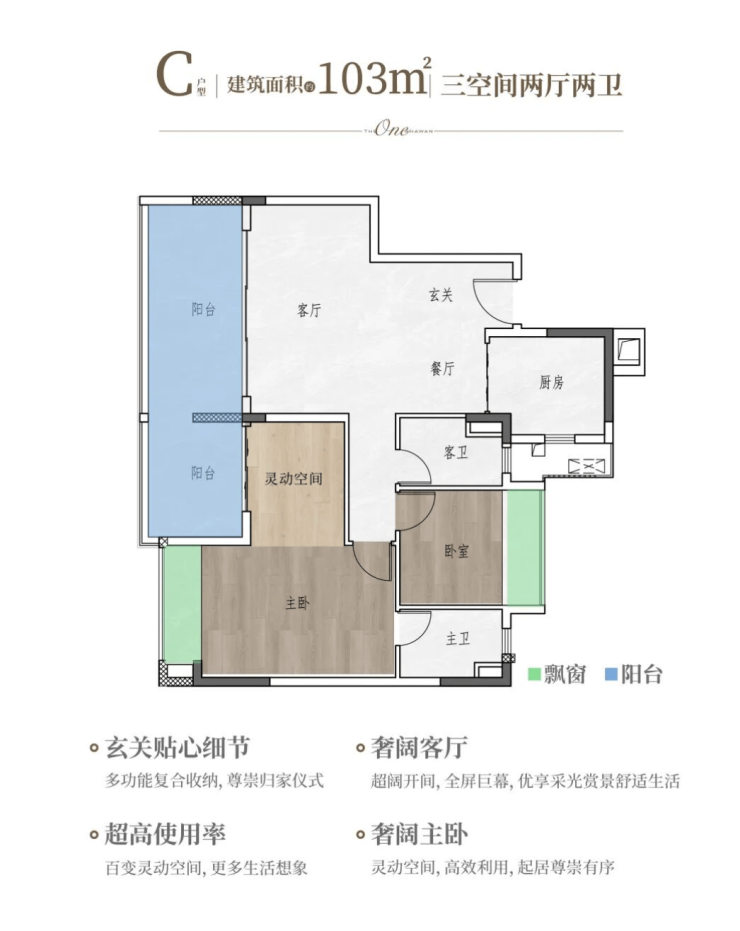 100㎡户型:实用空间相当于旧规120㎡产品,多出的面积意味着省下了几十万的购房成本。