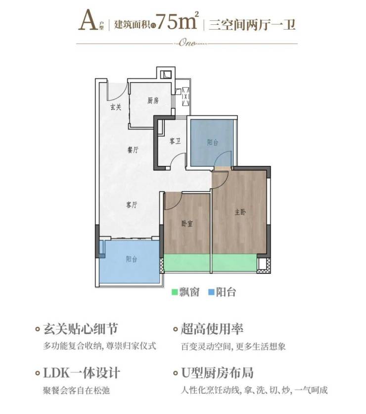 75㎡户型:做到了极致的三房两卫,麻雀虽小五脏俱全,是刚需上车的首选。