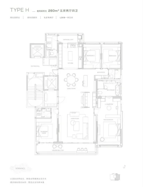 5. 260㎡与264㎡五房四卫:功能细分,舒适度天花板