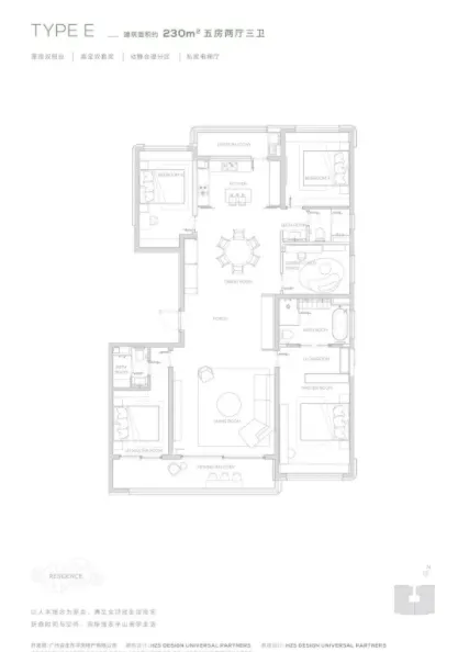 4. 230㎡五房三卫:阔绰尺度,大家庭居住首选