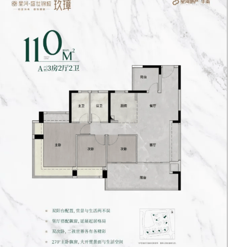110㎡户型:主朝向西南,带来充足的采光和通风,居住舒适度极高。客厅、阳台和主卧尺度全面超越二期同面积户型,空间更加开阔大气,彰显尊贵风范;宽敞的客厅是与家人共享欢乐时光的温馨港湾,舒适的主卧则为业主打造专属的私密空间,适合改善型家庭居住。