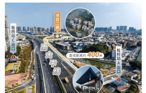 A3:三期玖璋组团距离7号线板桥站约700米,步行10分钟内可达;乘坐地铁2站即达万博,5站可达琶洲,自驾经南大干线半小时内可直达珠江新城,通勤便捷高效。