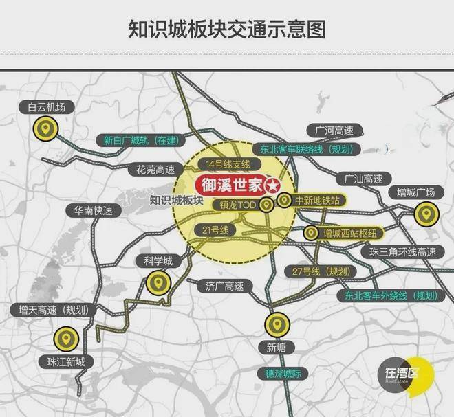 交通出行极为便捷,为居民的生活与出行提供了极大便利。项目坐拥双地铁优势,距离地铁 21 号线中新站约 1000 米,地铁 14/21 号线镇龙站也约 1000 米,搭乘快线 3 站就能直达天河,7 站抵达珠江新城,轻松融入广州繁华都市生活圈。对于在天河、珠江新城等地工作的居民来说,每天清晨可以从容地步行前往地铁站,快速到达工作地点,开启一天的工作;傍晚伴着夕阳余晖,又能便捷地回到温馨的家中。同时,还有业主楼巴车接驳到地铁口,为出行增添更多便利。此外,一大城轨 —— 穗莞深 - 新白广城际【镇龙站】,北至白云机场,南达深圳宝安机场,西连广州东站,通达佛山西站,让居民能够速达大湾区各核心城市,无论是商务出行还是休闲旅游,都变得轻松便捷。自驾方面,四纵路网(华快、京港澳、新新大道、珠三角环线)和六横路网(广河高速、广汕公路、花莞高速、增天高速、广园快速、济广高速)环绕,家门口就是广汕主干道,驾车 45 分钟可直达珠江新城,高效通勤,节省时间,让居民能够自由穿梭于城市之间,享受便捷的交通体验。