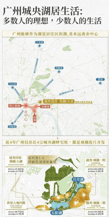 从土地价值来看,近 4 年间广州仅出让 4 宗城央湖畔宅地,且地价均破 4 万 +/㎡,最高达 5 万 +/㎡,足见城央湖居土地的稀缺性。而观樾天湖所在区域是广州罕见的同时满足 “主城区 + 低密 + 天然湖山 + 连片开发” 的板块,此前越秀地产以超百亿资本拿下三期地块,金茂拿下的四期地块也由越秀操盘设计,连片开发的模式让片区能够统筹规划配套,避免零散开发的弊端,未来生活氛围与区域价值将持续提升,成为天河新兴的低密富人区。