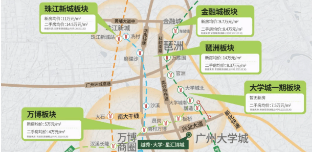 自驾:兴业大道/南大干线等主要道路网络串联起了万博CBD、广州南站等多个重要区域,自驾出行同样十分便利。