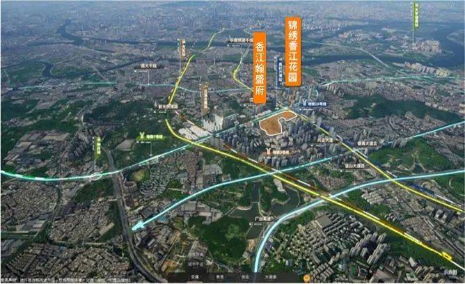 香江·翰盛府北望国家5A级旅游景区“长隆度假区”,东眺锦绣香江加拿大布查特艺术园林,自东向西延伸1.5公里生态景观轴至金山湖,形成了一片绿意盎然的城市绿洲。项目周边不仅拥有丰富的自然资源,还通过多条快速路网连接广州市区及其他重要区域,交通便利。