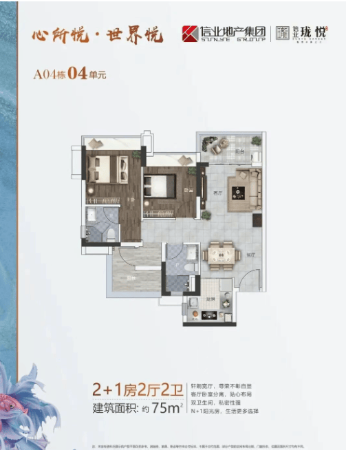 65–75㎡两至三房:紧凑高效,适合单身或小家庭;