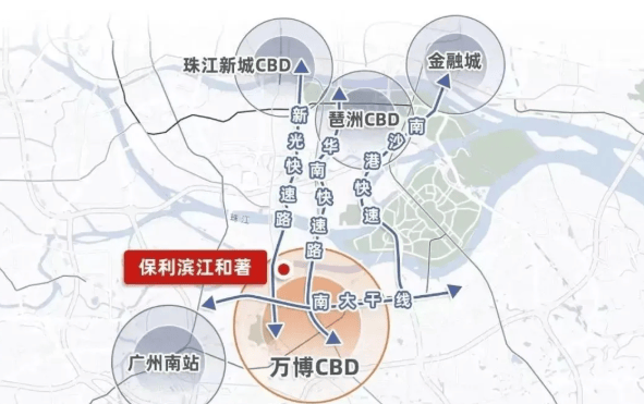 保利滨江和著落子番禺大石板块,地理位置极具战略意义。项目南向直面珠江后航道,推窗即见水岸风光,真正实现“离尘不离城”的理想生活状态。更为关键的是,其与广州三大核心商务区形成高效联动: