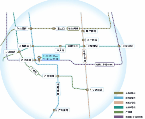 中海江泰里位于广州市海珠区江泰路,紧邻地铁2号线和即将开通的11号线交汇站——江泰路地铁站。这一地理位置不仅为居民提供了便捷的交通条件,还使得项目成为了一个融合了都市活力与自然美景的理想居住地。项目旨在通过其精美的设计、完善的配套设施以及卓越的品牌价值,为住户提供一个高品质的生活环境。