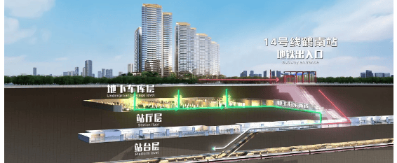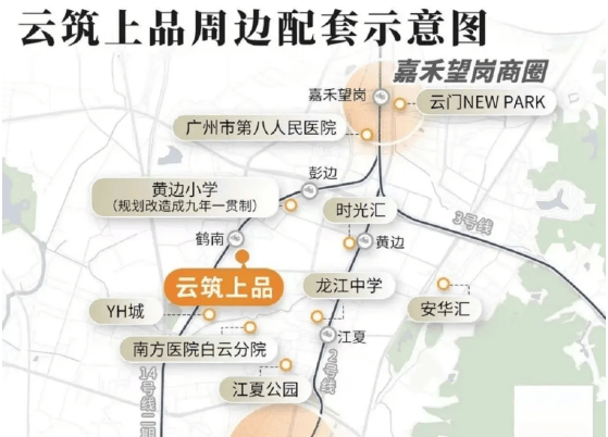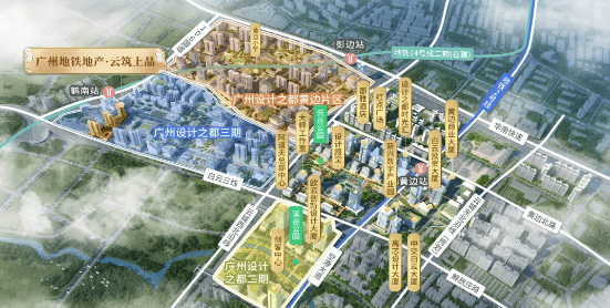 项目的交通优势堪称 “TOD 范本”。地铁方面,距在建 14 号线鹤南站仅约 200 米,该线路二期(嘉禾望岗 - 广州火车站)2024 年 8 月土建进度已达 62%,预计 2025 年建成,未来可直达社区地下车库大堂,实现 “风雨无阻” 归家;同时距 2 号线黄边站约 1 公里,可换乘 1、3 号线等线路,覆盖珠江新城、北京路等核心商圈。