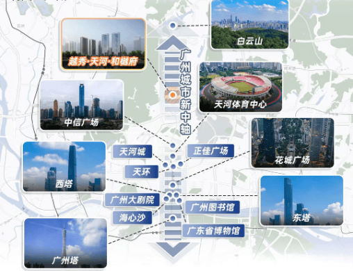 卓越的地理位置:地处广州中轴线,距离珠江新城仅5公里,交通便捷。