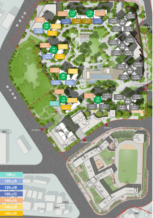 绿色生态:约1.5万平方米的中央大园林,结合下沉式广场、退台空间等设施,营造出一个充满活力的居住环境。