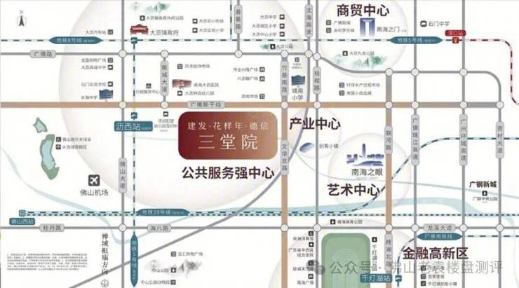 南海大沥,自古以来便是岭南商贸重镇,如今更是佛山融入广佛同城化的核心枢纽。建发三堂院所处的位置,正处于“千灯湖中轴北延”的核心发展带上。这一规划并非简单的地理概念,而是佛山市委市政府投入百亿级资源打造的“城市客厅”延伸区。随着南海区“中轴北拓”战略的深入实施,该区域已纳入佛山中心城区版图,承接了千灯湖金融高新区的产业外溢与人口导入。
