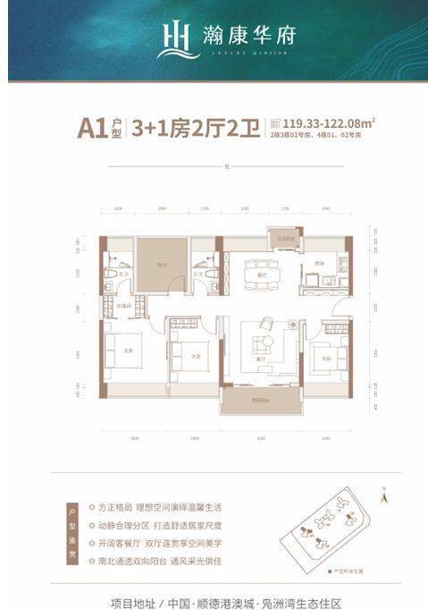 其区位优势明显,顺德港澳城将比肩广州南沙等地,全面对接大湾区优势资源,均安组团重点发展 “一镇、一岛、一港”,区域价值潜力巨大。产业上,百度云等超百家高新产业入驻,引领产业升级。交通便捷,临近南沙港铁路,依托广中江高速、深中通道,可速达广佛深莞等城市。江景资源得天独厚,三江三公园环绕,拥有 270° 南向一线江景,北侧规划有凫洲河生态湿地公园。教育资源丰富,周边多所名校,光正实验学校为省一级 12 年一贯制名校。地处均安城芯中轴,周边商业配套丰富。园林打造为全龄互动式生态园林,楼栋采用南向点状布局,低密奢适。由深耕湾区 20 载的瀚康集团匠心打造,品质有保障。目前推出建面约 84 - 123㎡三至四房江景华宅,毛坯销售,不限购不限贷。