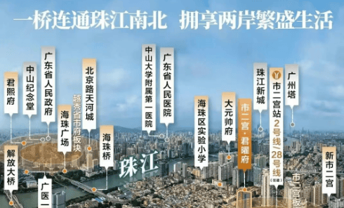 市二宫·君曜府位于广州市海珠区市二宫板块,作为广州第一中轴南拓首站,这里不仅承载着深厚的历史文化底蕴,也是海珠经济、文化的重要发源地。该区域凭借其独特的地理位置和丰富的历史背景,成为广州豪宅发展的起源地之一。