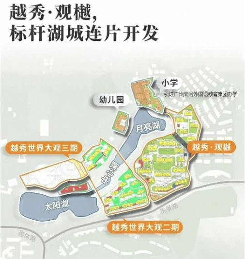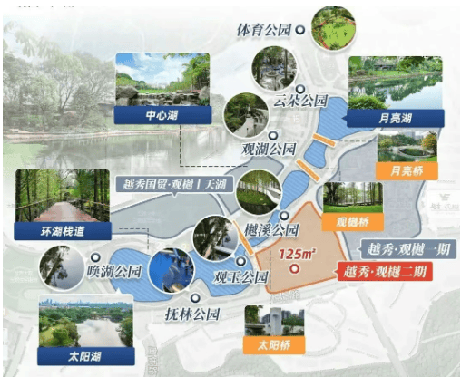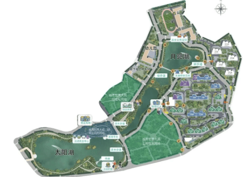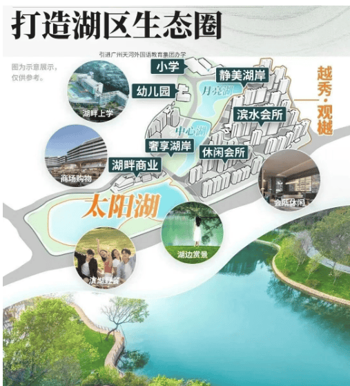 双湖景: 周边环绕太阳湖和月亮湖两个人工湖,享有丰富的山水资源,是天河东部重要的绿色开敞空间。