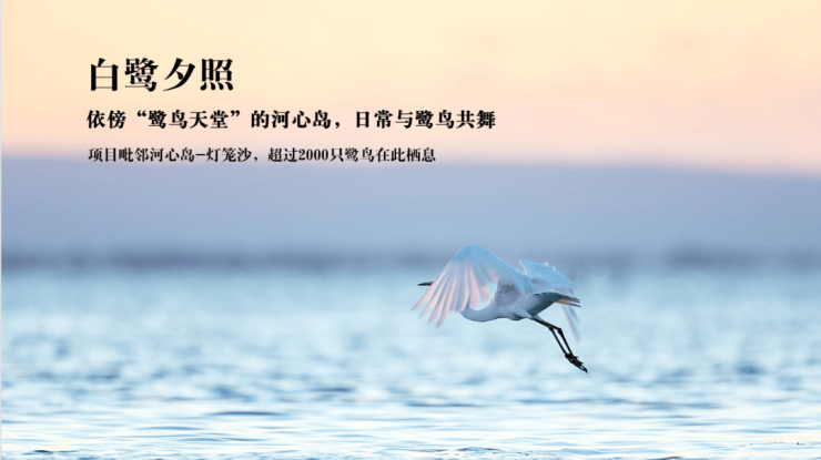 17公里景观带,窗边即可享受佛山会客厅风采,项目对面即三龙湾夜游起始点:龙舟广场,南面滨江绿道及潭洲水道视野无障碍,占据稀缺一线江景资源,头排望江,五大公园环绕,2000只白鹭栖息,让居者与大自然比邻而居。