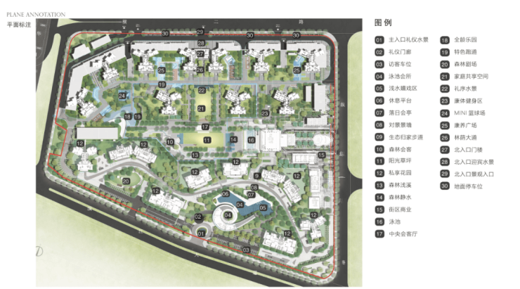 北区布置10栋33层高层住宅,南区10栋30层高层住宅