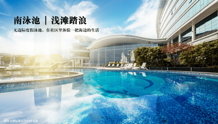 仿照马尔代夫四季度假酒店打造的室外无边际度假泳池,在社区里体验一把海边的生活