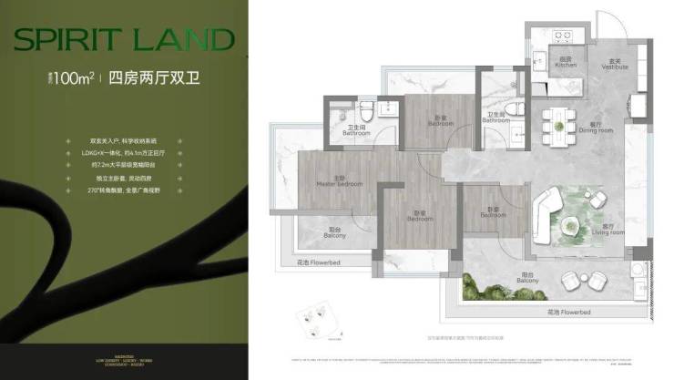 建面约100㎡ 四房两厅两卫:海珠唯一100方内正四房,稀缺性突出;LDKG+X一体化设计,4.1m方正巨厅,空间宽敞;约7.2m大平层级阳台,晾晒、休闲两不误;独立主卧套,灵动四房设计,可根据家庭需求调整空间,270°转角飘窗,全景广角视野,适合刚改家庭居住。