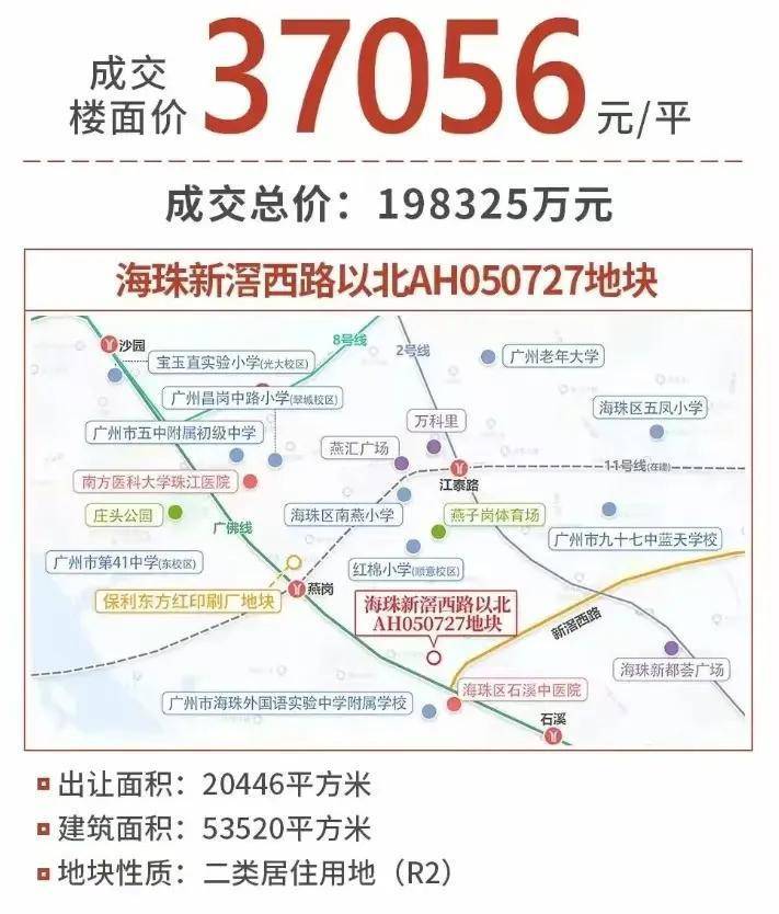 拿地时间:2023年12月,中建信和(中建五局)以19.8亿总价拿下海珠新滘西路以北地块,折合楼面价约3.7万/平。