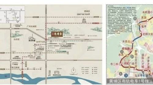 有轨电车:门口设有有轨电车1号线长岭居小学站,快速串联黄埔区内重要板块。
