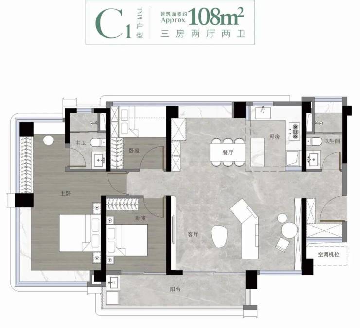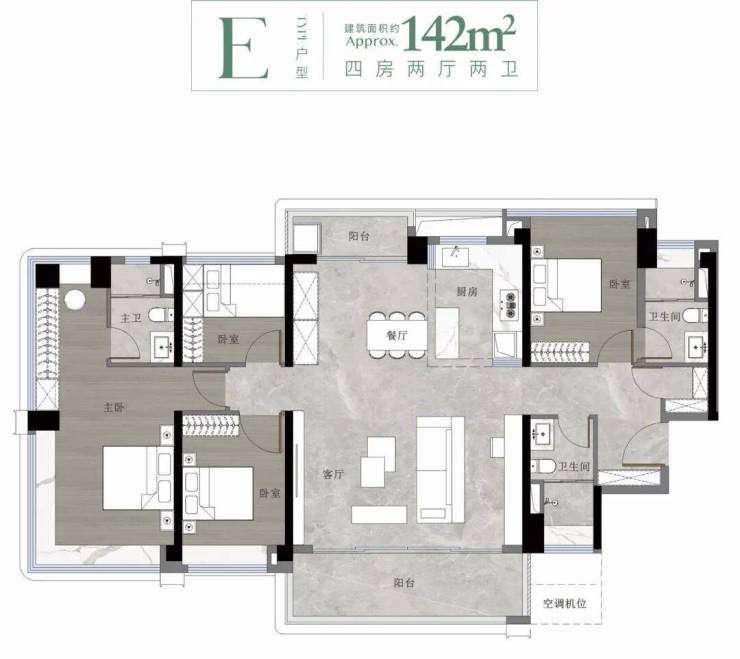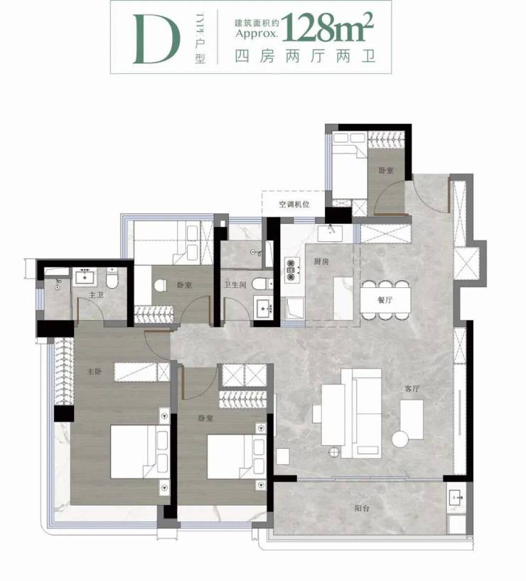 首推的建面约79㎡三房、98㎡四房及142㎡改善户型,均采用新规设计,使用率普遍超过100%。以98㎡四房为例,主卧带飘窗、次卧临近卫生间、厨房预留双开门冰箱位,细节考虑周全。更值得留意的是,主力户型基本实现全南向布局,阳台视野开阔,部分高层单位可远眺龙头山绿意。收纳系统也经过优化,玄关柜、阳台家政区、主卧衣柜均按人体工学尺度定制,提升日常居住效率。