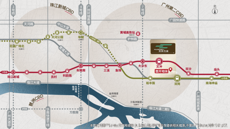 项目紧邻广州地铁5号线文冲站与13号线双岗站,实测早高峰从文冲站出发,3站可达金融城,6站抵达琶洲,9站无需换乘即可进入珠江新城核心区。对于在天河或海珠上班的上班族而言,这意味着每天可节省近1小时通勤时间。除了轨道交通,周边还有黄埔大道、中山大道、临江大道等主干道环绕,自驾出行同样高效。周末去美林天地逛街、带孩子去黄埔儿童公园放风筝,车程基本控制在10分钟内。