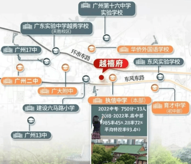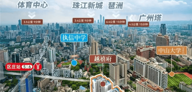 越禧府坐落于广州市越秀区华乐街道先烈南路23号,紧邻百年名校执信中学本部。这里不仅是广州教育高地的核心腹地,更是城市文化精神的象征所在。项目对口省级建设六马路小学,并可通过摇号入读包括执信中学、广州二中、广大附中、十六中、育才中学、华侨外国语学校等在内的8所省一级初中。优质教育资源环伺,为下一代的成长铺就一条通往卓越的坦途。