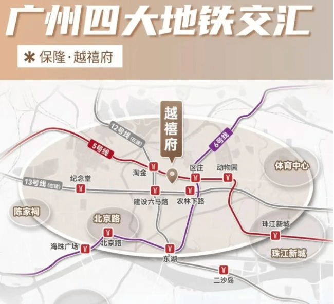 交通,是衡量城市核心资产价值的重要标尺。越禧府坐拥地铁5号线与6号线交汇的区庄站,步行仅约500米,轻松接驳珠江新城、天河CBD、北京路等城市核心板块。更令人期待的是,12号线与13号线(淘金站、农林下路站)预计将于2025年底开通,届时项目将实现“四地铁环绕”的立体交通格局。