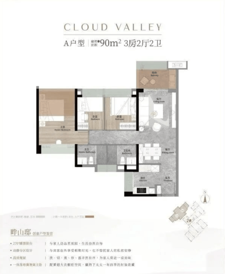 90㎡ 2+1房:总价285万起,刚需首选,空间利用率超90%。