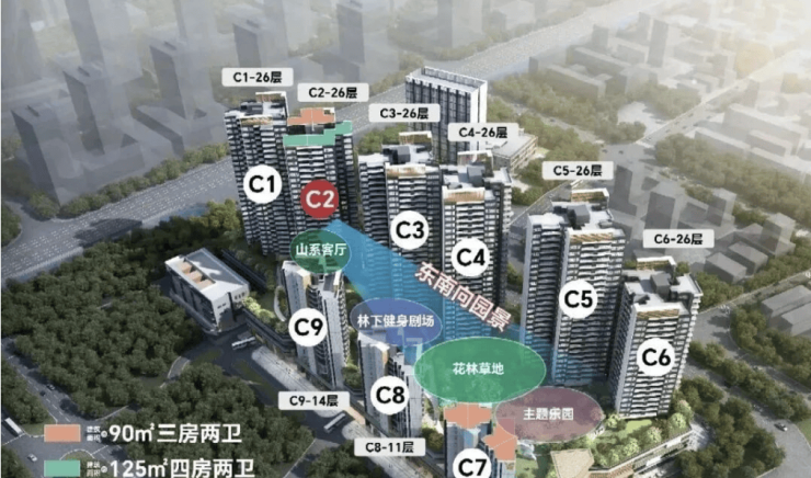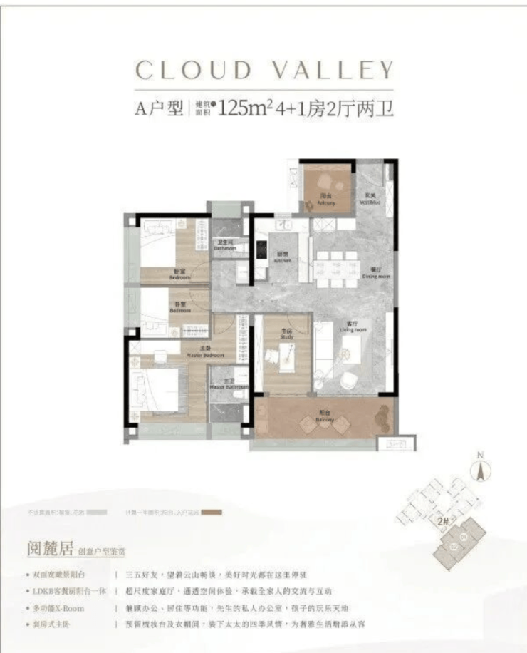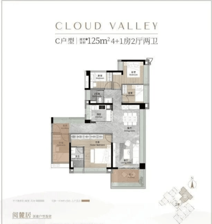 125㎡ 4+1房:总价450-480万,南北通透双阳台,改善型家庭优选。