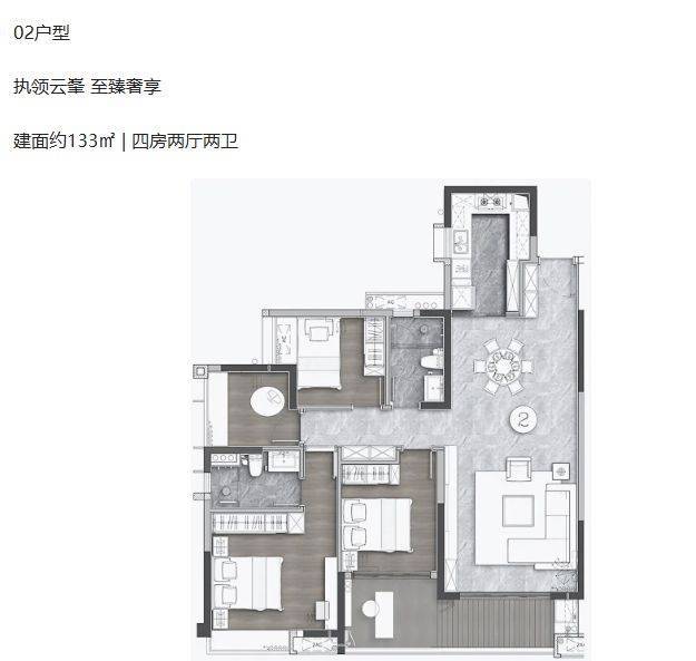 户型设计是嘉业・云裳峯尚的一大亮点。契合精英家庭居住需求,匠心打造建面约 78 - 133㎡的精奢著作。采用 N + 1 的创新设计,将空间极致利用,比如 78㎡能做到三房两厅一卫,111㎡和 133㎡更是打造出四房两厅两卫的宽敞格局,为生活解锁多种可能。这种设计不仅满足了家庭不同阶段的需求,还大大提高了得房率,让每一寸空间都物超所值。