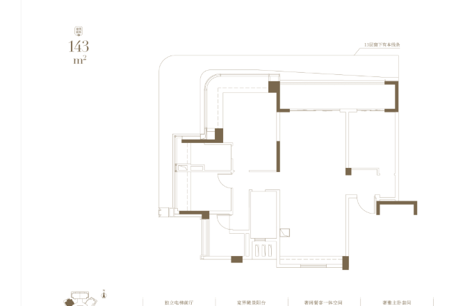 建面约 143㎡四房户型