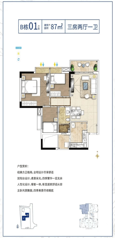 顺景花园·星悦轩推出了多种户型选择,面积约为75-110平方米的臻品三房: