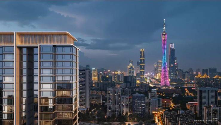 项目全盘规划为小高层产品,摒弃高密度楼栋布局,是新规后海珠中轴首个纯板楼社区。建筑规划以居住舒适度为核心,采用纯板式结构设计,实现户户南北通透,同时保障每户的采光时长与通风效果,提升居住私密性。外立面设计贴合国际精奢酒店风格,线条简洁利落,材质选用兼顾耐用性与美观度,整体视觉质感统一,与周边城市景观、中轴风貌相契合。建筑布局充分考量景观视野,北侧楼栋可俯瞰广州塔景观,东南侧楼栋直面海珠湖与海珠国家湿地公园,实现建筑与自然景观的有机融合,无过度浮夸的设计元素,兼顾颜值与实用性。