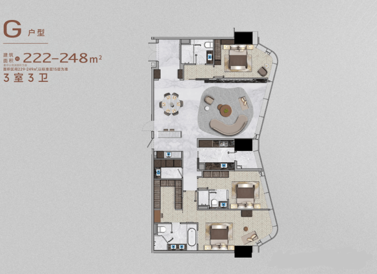 这种对美学与功能的极致追求,不仅体现在建筑外观,更贯穿于整个社区肌理。项目总建筑面积约6.4万平方米,仅规划120户,建筑高度达120米,每一寸空间都经过精雕细琢,只为呈现真正匹配塔尖人群审美与生活需求的传世之作。